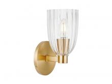 Create beautiful illumination with this 1-light sconce! Its ribbed glass shade brings in a big dose of textural intrigue and its Natural Brass finish adds richness. This sconce is 9.38" in height, 5" in width and extends 5.5" from the wall. It uses one candelabra size bulb of up to 60 watts. Bulb not included.