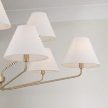 Soft angles and classic style create the Chadwick Two-Tier Chandelier. The tapered White fabric shades bring a visual balance to the elegant metal arms, finished in Aged Brass for a mid-century touch of shine.