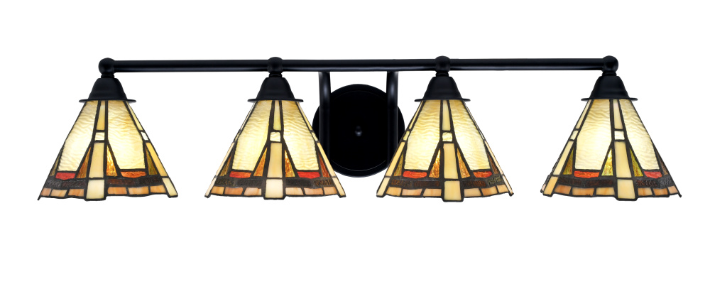 Toltec Lighting 3424-MB-9345 Paramount 4 Light Bath Bar Shown In Matte Black Finish With 7 Zion Art Glass
