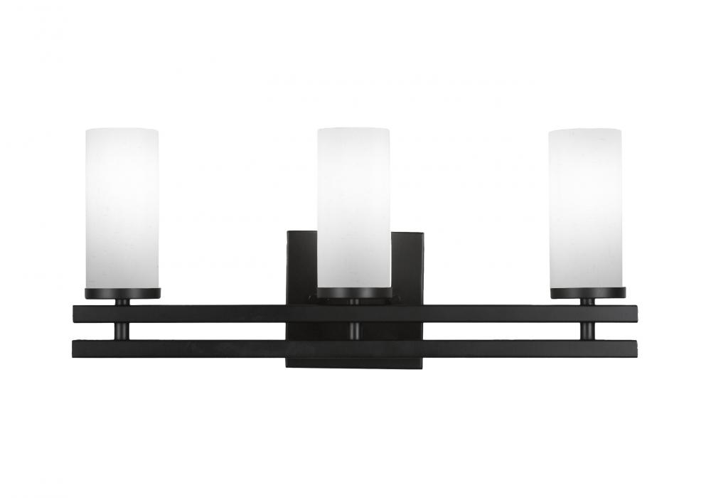 Toltec Lighting 2713-MB-801 Belmont 3 Light Bath Bar Shown In Matte Black Finish With 2.5? White Muslin Glass