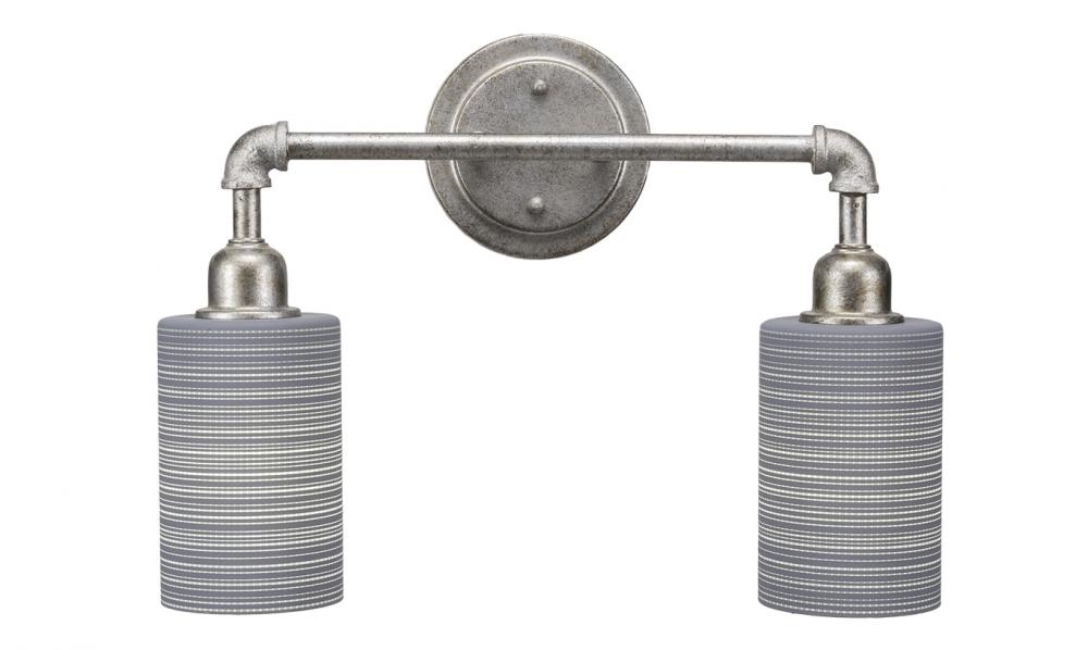 Toltec Lighting 182-AS-4062 Vintage 2 Light Bath Bar Shown In Aged Silver Finish with 4 Gray Matrix Glass
