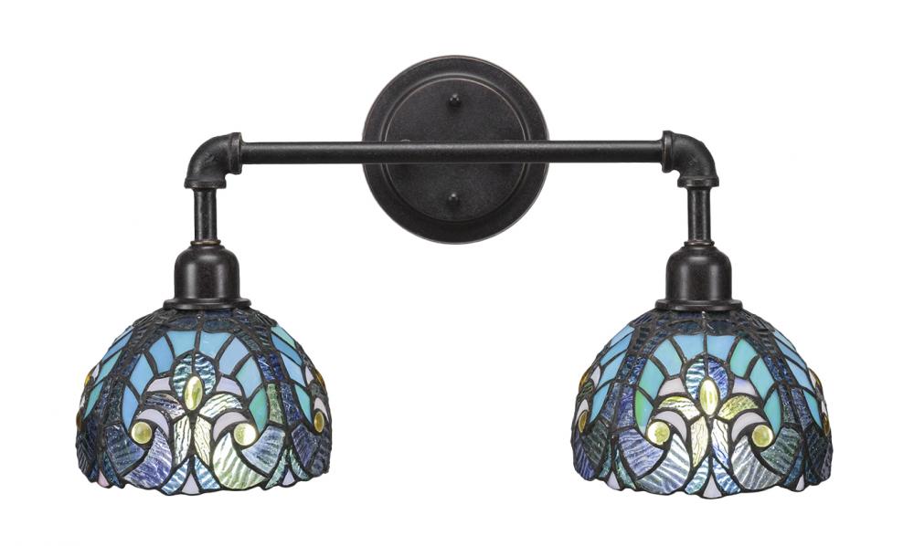 Toltec Lighting 182-DG-9925 Vintage 2 Light Bath Bar Shown In Dark Granite Finish with 7 Turquoise Cypress Art Glass