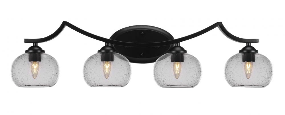 Toltec Lighting 554-MB-202 Zilo 4 Light Bath Bar Shown In Matte Black Finish With 7 Clear Bubble Glass