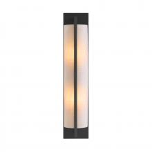 The Savoy House Carver 2-light sconce is oh so sleek and oh so chic. A long, tall white fabric shade is held to the backplate by an arm that overlaps the shade to create a sense of symmetry and is decorated with a Matte Black finish. Carver is 22" in height, 4.5" in width and extends 4" from the wall. Uses two candelabra size bulbs of up to 40 watts per bulb. Bulbs not included.