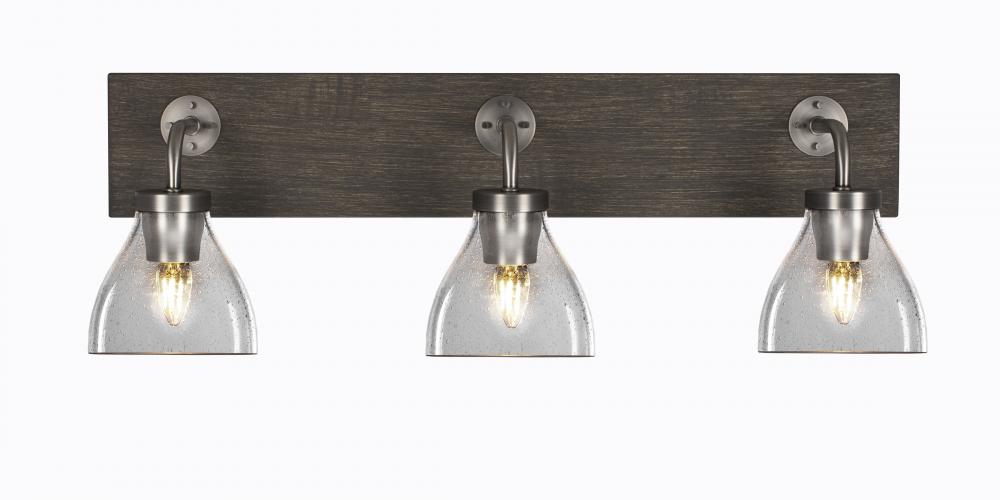 Toltec Lighting 1773-GPDW-4760 Oxbridge 3 Light Bath Bar Shown In Graphite & Painted Distressed Wood-look Metal Finish With 6.25 Clear Bubble Glass