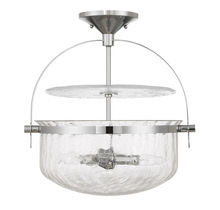 The Savoy House Denmar 4-light convertible semi-flush mount perfectly illuminates a wide variety of spaces with its classic style. It also has superior versatility because it can be used as a hanging pendant or ceiling light! The shade and diffuser of crackled glass bring eye-catching texture while the Chrome finish adds sleekness. Denmar is 18" in width and has an adjustable height ranging from 19" to 73". Comes with four 12" downrods and one 6" downrod. Uses four candelabra size bulbs of up to 60 watts per bulb. Bulbs not included.