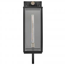 Striking and airy, Catalina breathes modern simplicity into outdoor spaces. Oversized clear glass, a unique single socket, and a two-tone Black with Burnished Bronze finish pair perfectly to present a statement-making fixture. The finishing touch is a floating effect created by the classic rectangular lantern design suspended from a top knob.