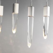 Stalactites of Clear Beveled crystal suspend from your choice of Polished Chrome or Black supports, can be hung at various heights to create a spectacular array. The crystal shimmers as light diffuses through the facets powered by 90 CRI LED dimmable modul